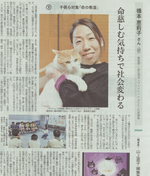 - 命の教室実績 藤井寺南幼稚園、道明寺南幼稚園、道明寺中学校2年生・3年生、Happy Life様主催命の教室(大阪府堺市)、春日井さくら猫の会様主催 いのちの教室(愛知県中部大学)、Happy Tabby Roomでの教室、安中光こども園での教室(大阪府八尾市)、藤井寺幼稚園での教室(大阪府藤井寺市)