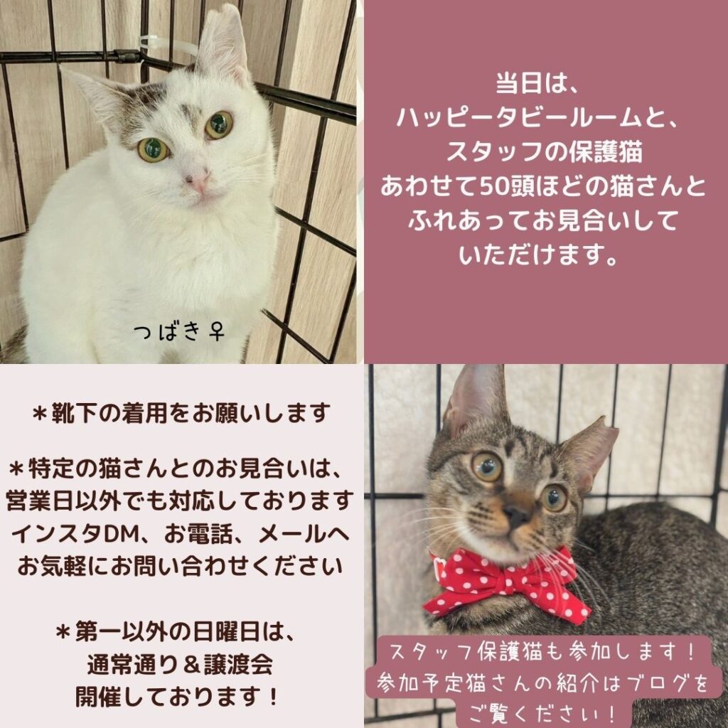 この日は二階の保護猫カフェ、一階のスタッフ保護猫譲渡会まで、すべて入場無料でご利用頂けます!